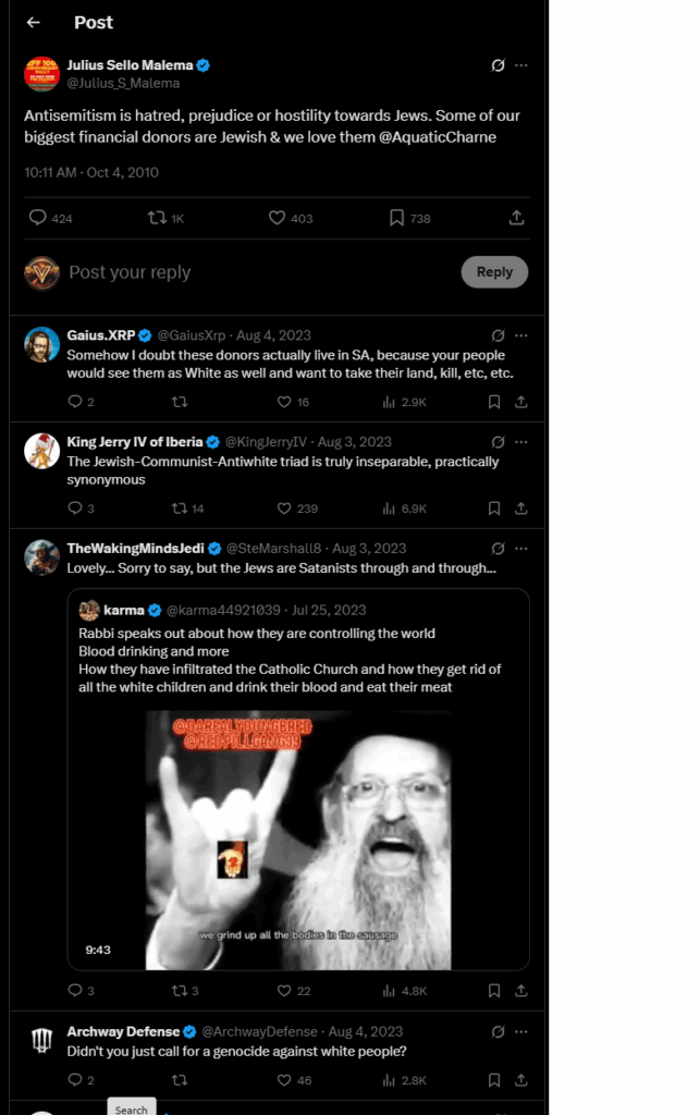 See the tweet below of Julius Malema who has been pushing for White genocide and see who he claims has been funding them.